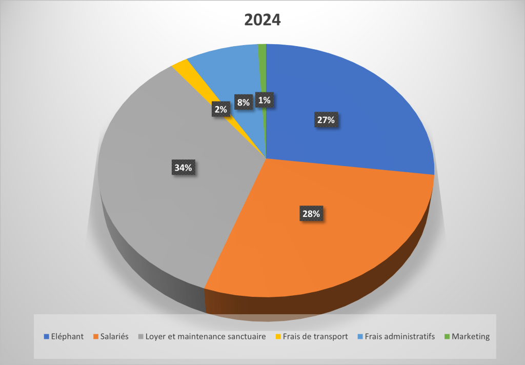 Legend: Salariés=employees, loyer et maintenance sanctuaire=rent and sanctuary, maintenance; frais de transport=transporation fees; frais administratifs=administrative fees